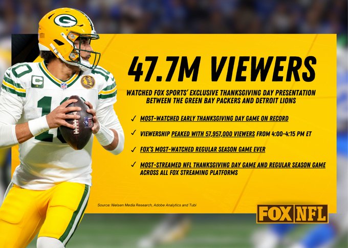 Packers-Lions delivers the most-watched early Thanksgiving Day game on record