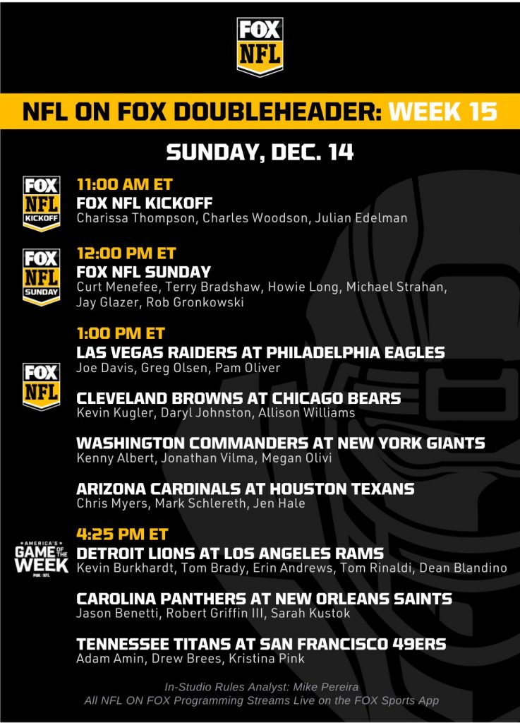 NFL on FOX Week 15 Schedule and Regionalization
