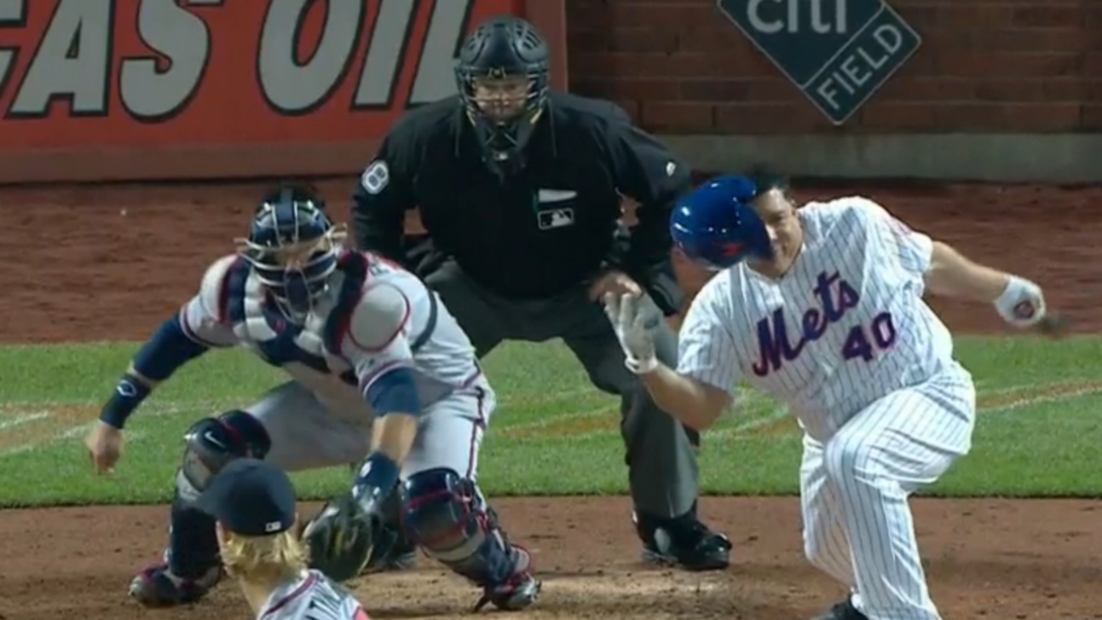 Colon swings very hard, but has never seemed to find a helmet that fits him well. During a 4-1 win over the Braves Monday (Colon picked up his 220th career victory), he caught his batting helmet as it dropped to the ground following a strikeout.