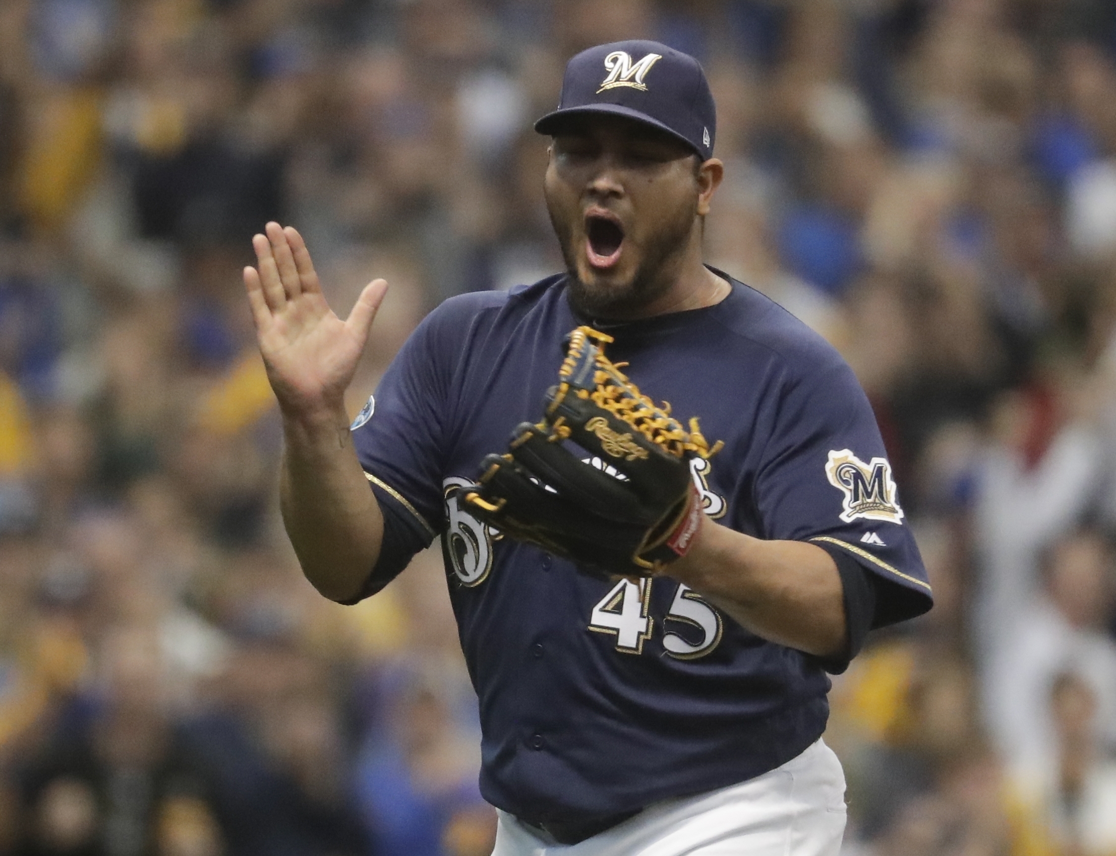 Backed by a sellout crowd of 44,547 waving yellow towels and standing for every big moment, Chacin set up Milwaukee's bullpen by escaping a pair of early jams. The veteran right-hander, who helped pitch the Brewers past the Chicago Cubs in the division tiebreaker Monday at Wrigley Field, allowed three hits and walked three.