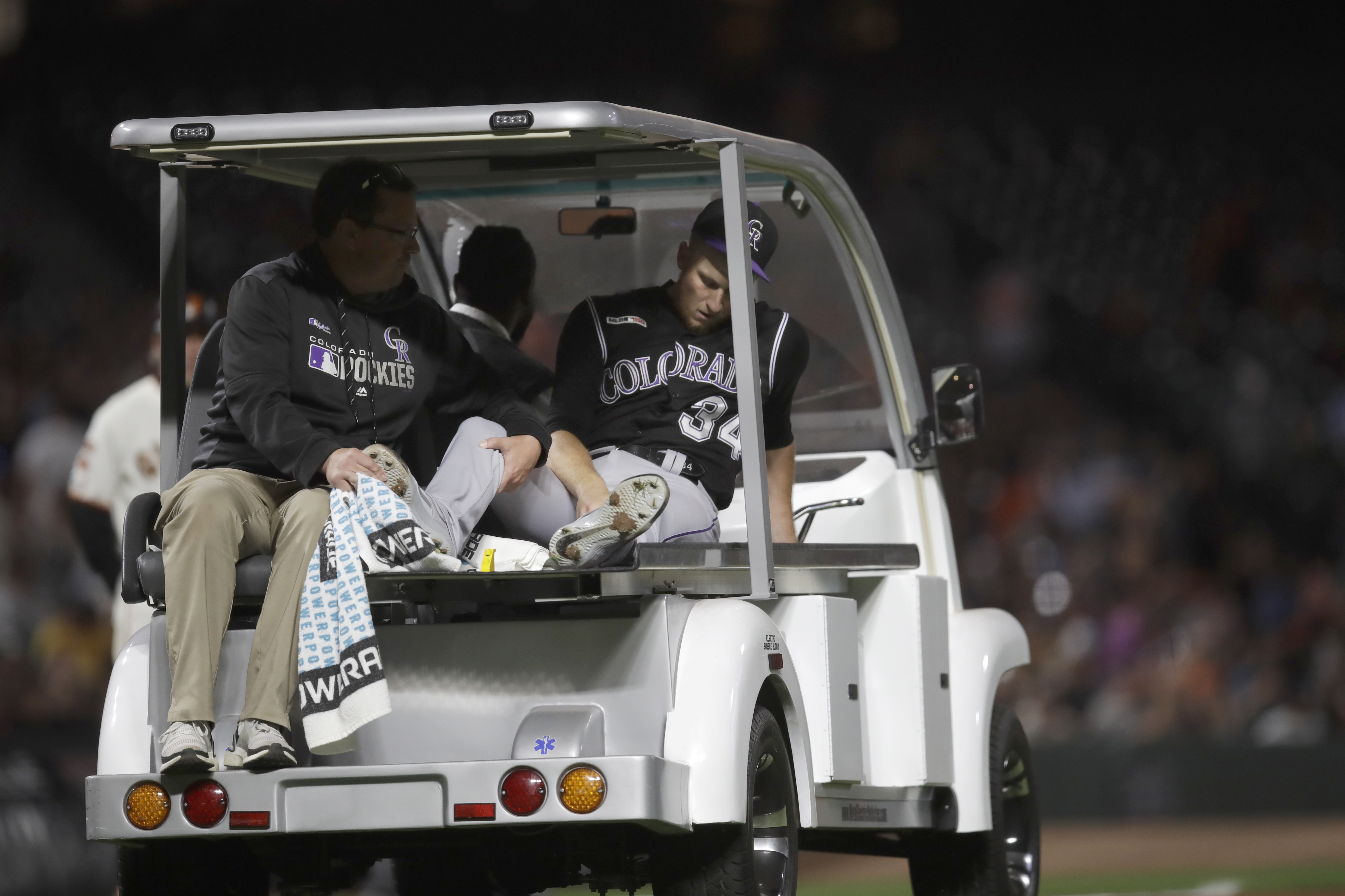 Garrett Hampson hit his second homer of the game to put Colorado ahead in the eighth after losing starter Jeff Hoffman to a knee injury from a line drive, but the Giants kept pushing. The Rockies got great news that it was only a bone bruise for Hoffman, who had crutches. X-rays were negative.