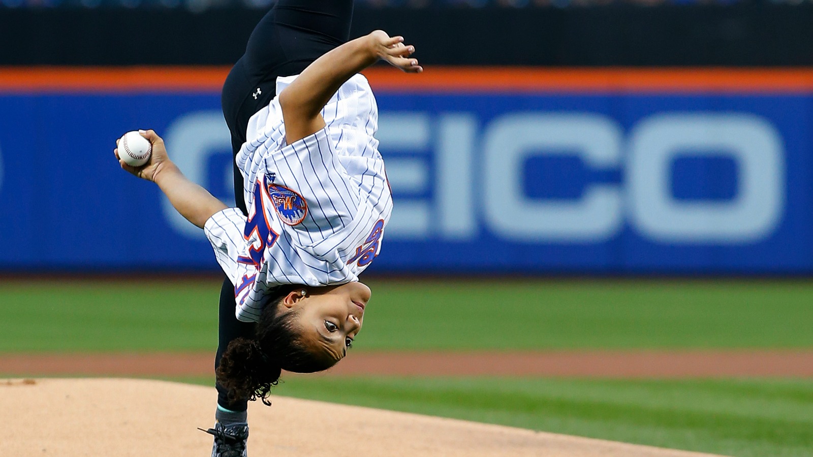 Gold medalist Laurie Hernandez throws amazing cartwheel first pitch