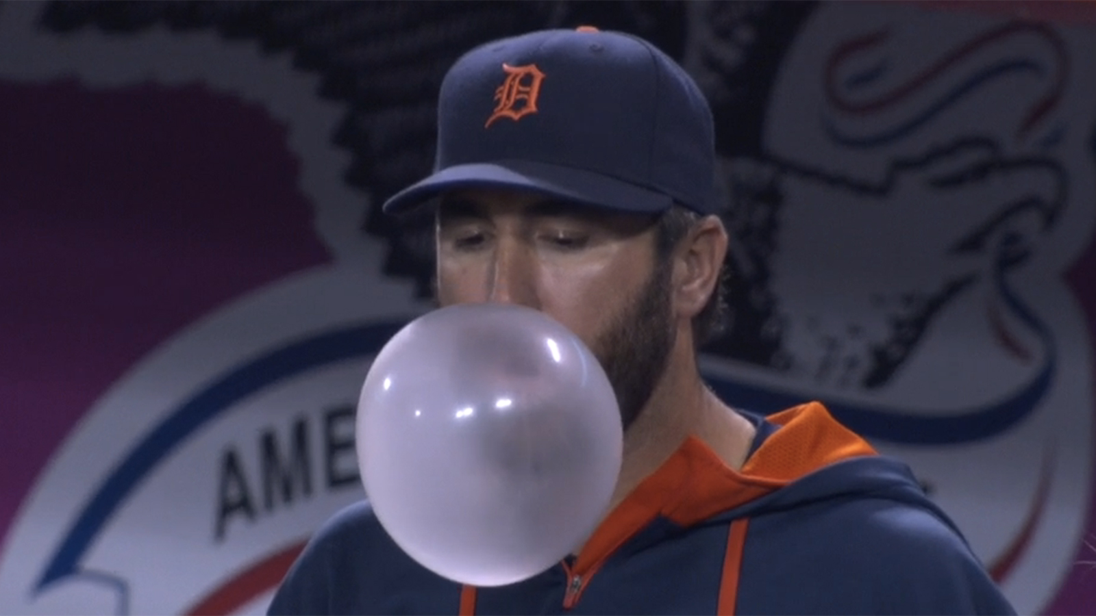 Watch Justin Verlander blow a monster bubble of gum
