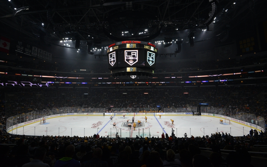 Oct 14, 2016; Los Angeles, CA, USA; General view of the opening faceoff of a NHL game between the Philadelphia Flyers and the Los Angeles Kings at Staples Center. Mandatory Credit: Kirby Lee-USA TODAY Sports