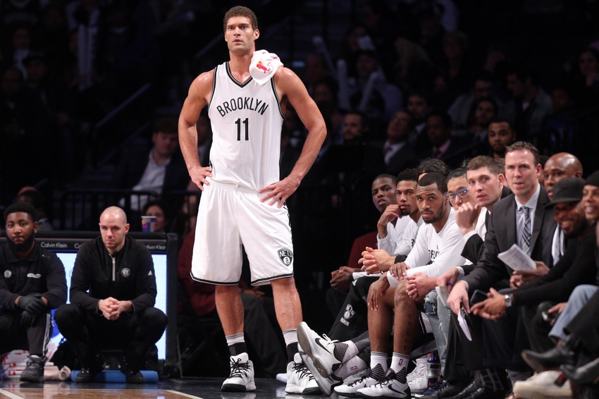 Nov 29, 2016; Brooklyn, NY, USA; Brooklyn Nets center Brook Lopez (11) watches from the bench during the third quarter against the Los Angeles Clippers at Barclays Center. Mandatory Credit: Brad Penner-USA TODAY Sports