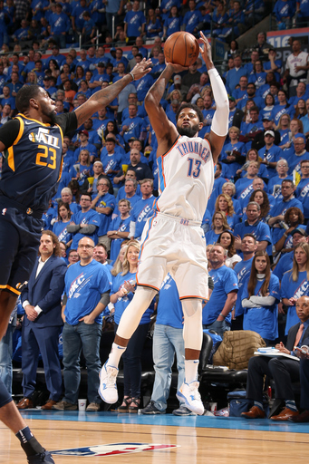 George's outburst is significant because in Oklahoma City's five-game playoff series with Houston last season, no Thunder player other than Westbrook scored more than 20 points in a game. Westbrook averaged 37.4 points in the series, but no other Thunder player averaged more than 11.6.