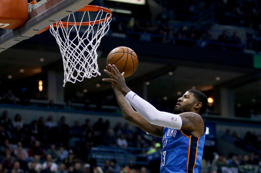 Thunder: George, Anthony, Adams and Westbrook combined for 48 first-half points. The quartet alone outscored the Bucks in the half, who trailed 60-42 at halftime. ... Among the star trio of Anthony, George and Westbrook, Anthony was the last to leave the floor for the night, playing until there were 6 minutes left in the game with the Thunder leading by 23.