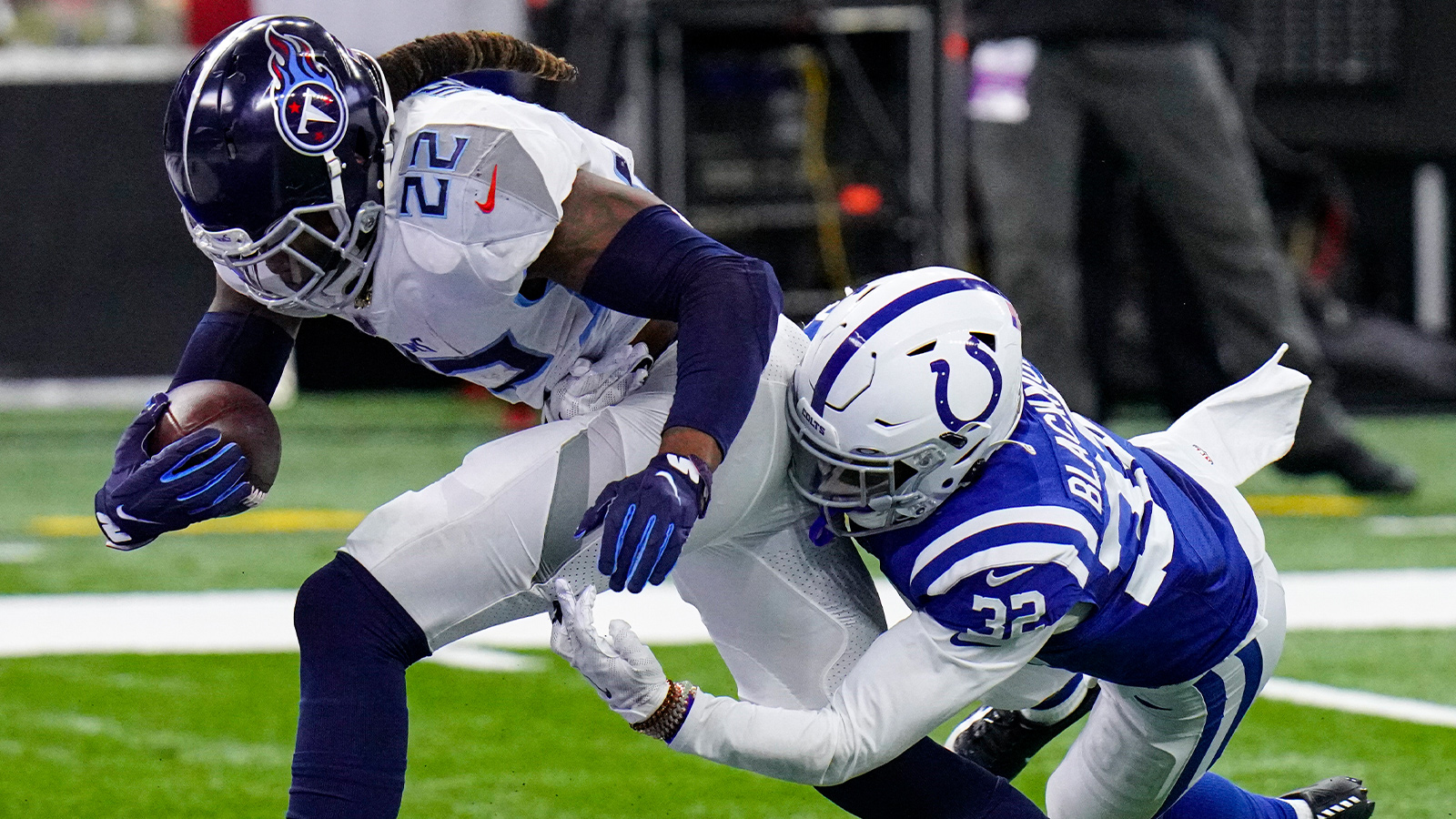 Derrick Henry continued to torment opposing defenses in Week 12, bullying his way to three first-half touchdowns to help the Tennessee Titans reclaim first place in the AFC South with a 45-26 victory at Indianapolis.