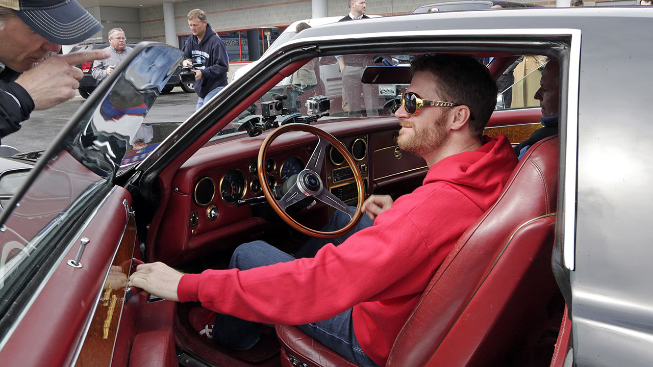 Dale Earnhardt Jr. takes Elvis Presley's '73 Stutz Blackhawk for a spin at Charlotte Motor Speedway