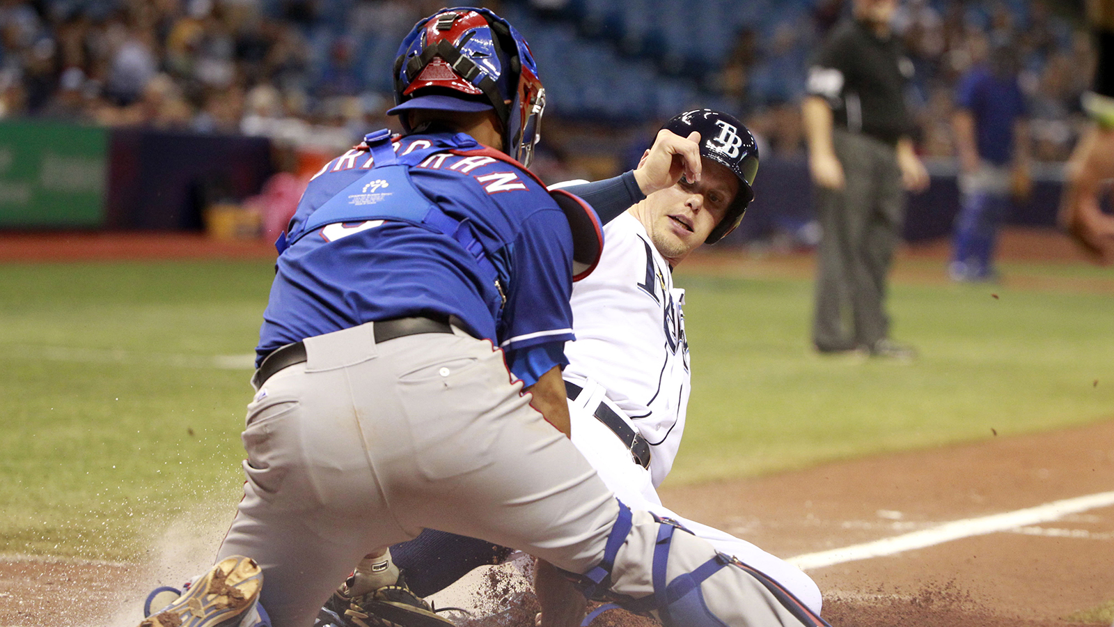 Texas challenged the safe call, which was confirmed after a wait of 3 1/2 minutes.