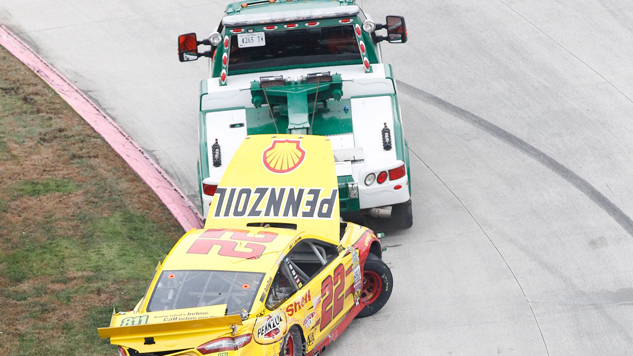 A fan is now selling a custom 1:24 scale die-cast of Logano's wrecked No. 22 Ford from the Martinsville race. While the damaged die-cast is unique in and of itself, it also sits on a tow truck with a No. 20 and the words "Kenseth Wrecking Service."