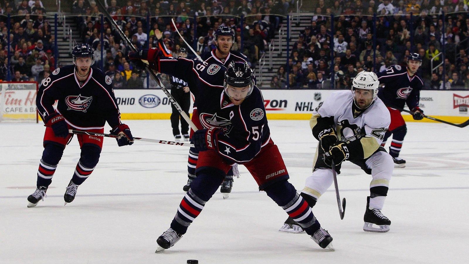 Crosby's shot, which broke a 2-2 tie midway through the third period, was initially stopped by Curtis McElhinney. But Columbus defenseman Fedor Tyutin plowed into McElhinney, and the puck ended up over the goal line. It was Crosby's 22nd goal of the season off a feed from Kunitz on a 2-on-2 rush.