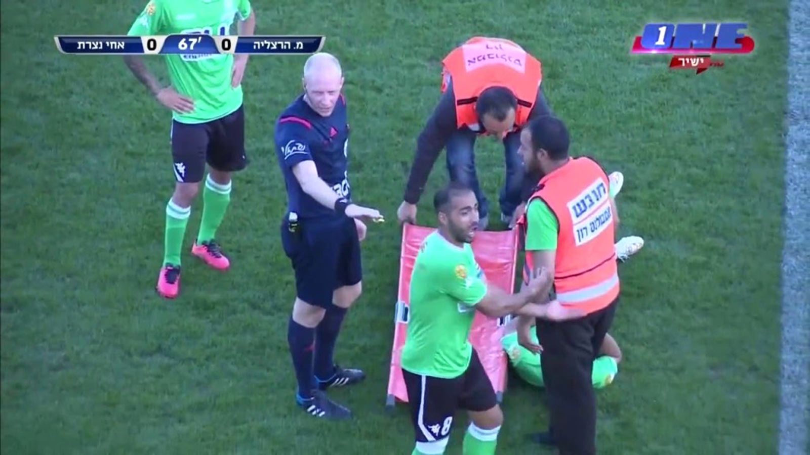 Hilarious stretcher fail highlights Israeli soccer match