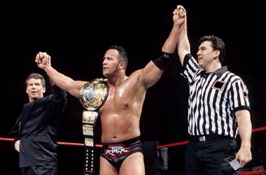 Before Dwayne Johnson became the “Sexiest Man Alive”, he was simply a third-generation wrestler known as Rocky Maivia. Mixing the names of his father and his grandfather, he burst onto the scene at Survivor Series in 1996 at Madison Square Garden in New York City as a teammate of Marc Mero, Jake “The Snake” Roberts and The Stalker to take on Crush, Jerry “The King” Lawler, Goldust and another youngster named Hunter Hearst Helmsley in a 4-on-4 traditional Survivor Series match.